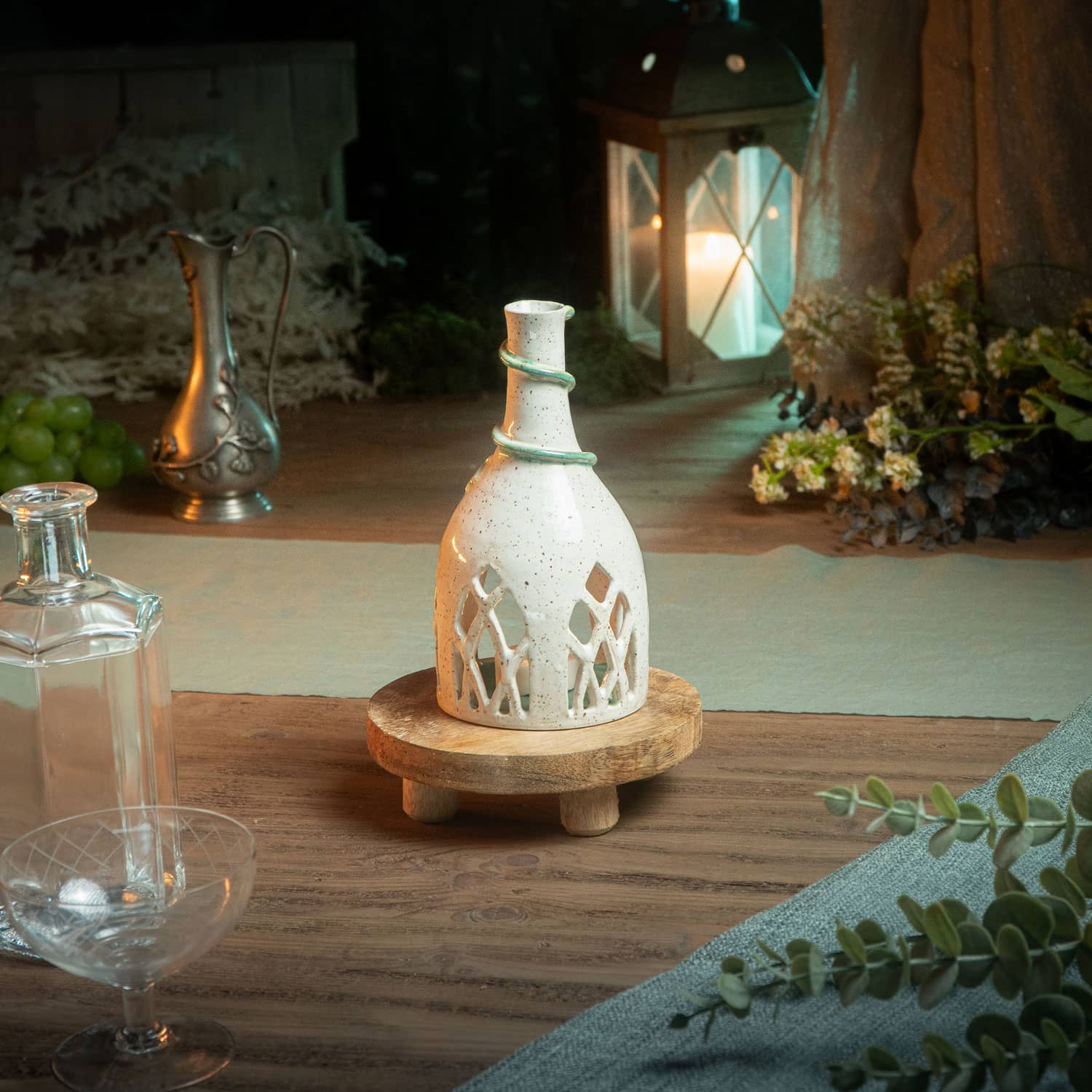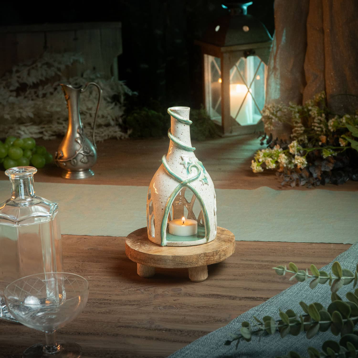 Il pourra accueillir une bougie type chauffe-plat ou électrique ou encore une petite guirlande lumineuse.